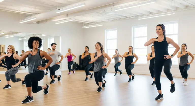 Group fitness class with instructor leading participants